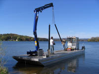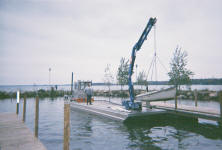 In 2006, Deano Dock & Lift added a transportable 45 foot barge with a 55 foot crane to the fleet. With this state of the art piece of equipment, we hope to serve you even better than before. We now have the capabilities to handle everything from small individual accounts to large commercial accounts. If you see the barge out on the water, feel free to call the barge phone at 608.843.4357. We'd be glad to swing by and give you a tour. |